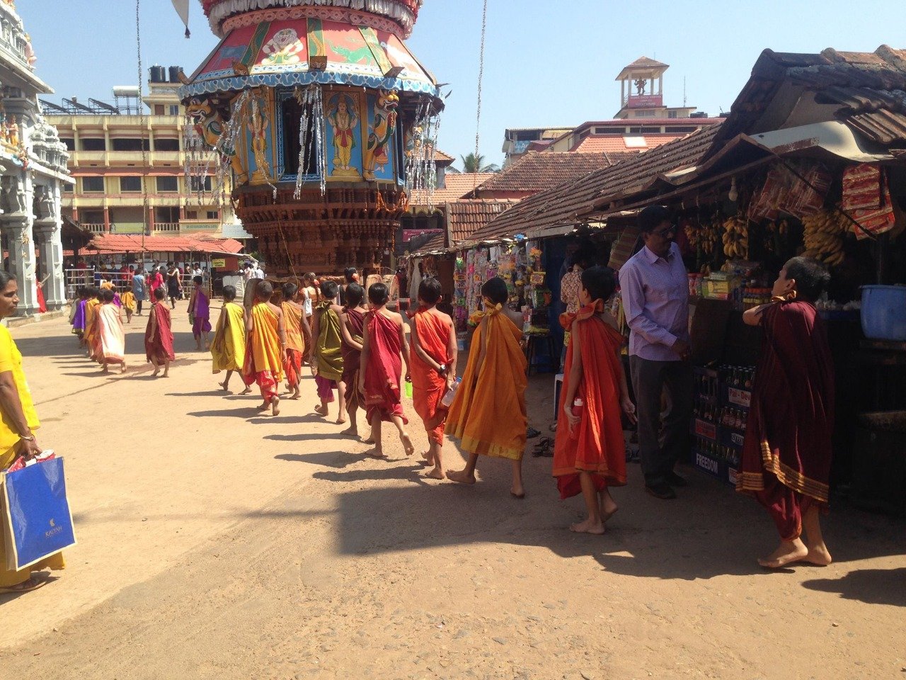 Traditional wear for temple visits (Lungi/dhoti for men, Saree/Indian wear for women)