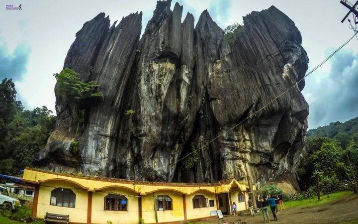Trek through green forests to discover two giant black limestone monoliths—Bhairaveshwara Shikhara (about 120 m) and Mohini Shikhara (about 90 m). A tiny Shiva temple sits at the base, where water gently drips onto the linga—a place where geology and myth meet.